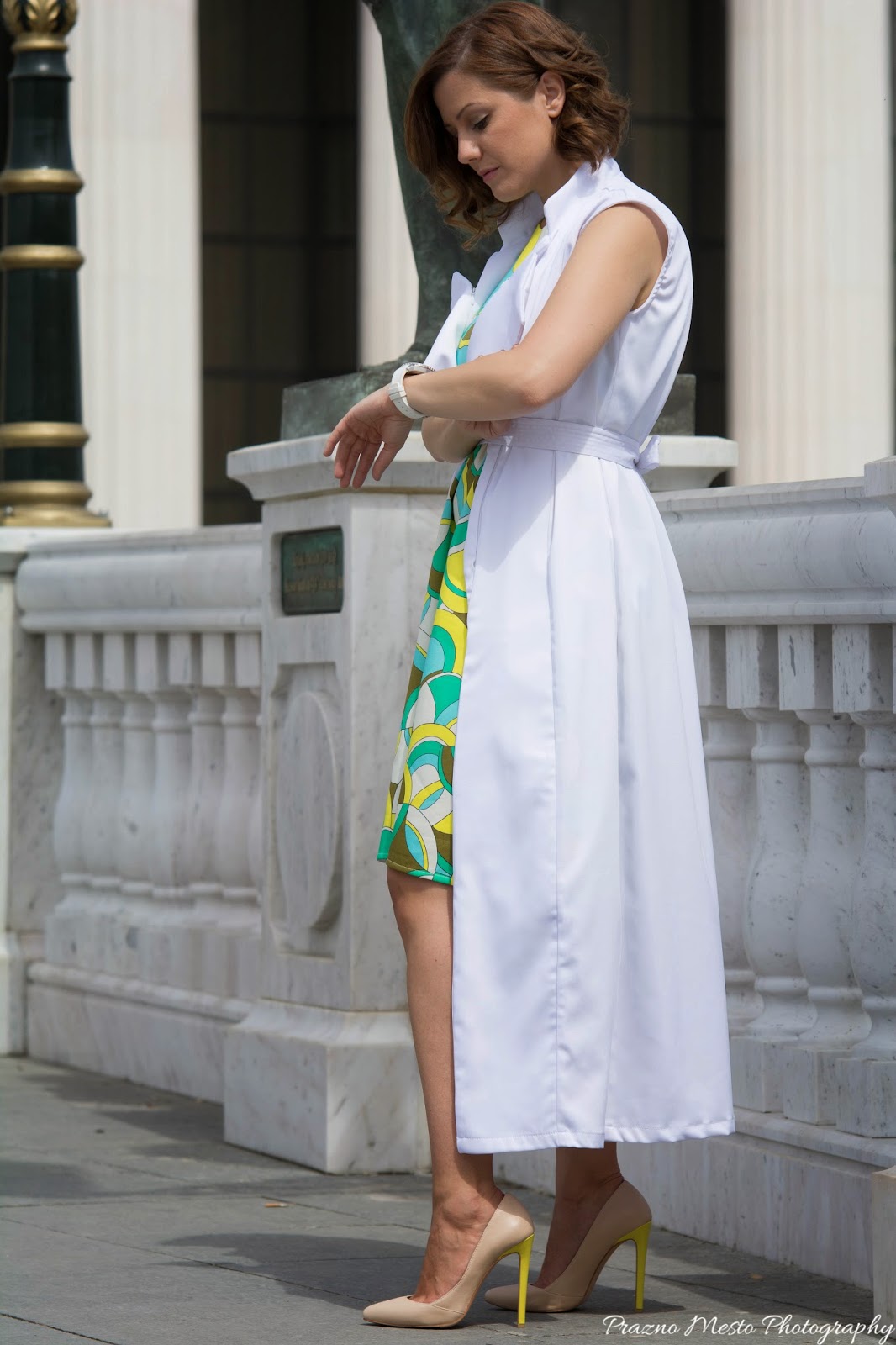 Irina executed her vision with a stunning attention to details, making her designs infinitely wearable, regardless of current trends. I made two different combinations with this trench. The first combination is more chic, brave and sexy. Because I’m so in to colors, the white trench had to be combined with burst color dress and a good pair of heels. This kind of fashion piece, like this timeless white trench, can elevate everything in your wardrobe, from denim to go-out pieces.